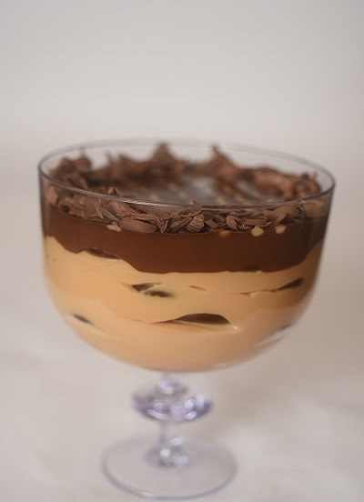 Brigadeiro cremoso de doce deleite, biscoito de chocolate e ganache.